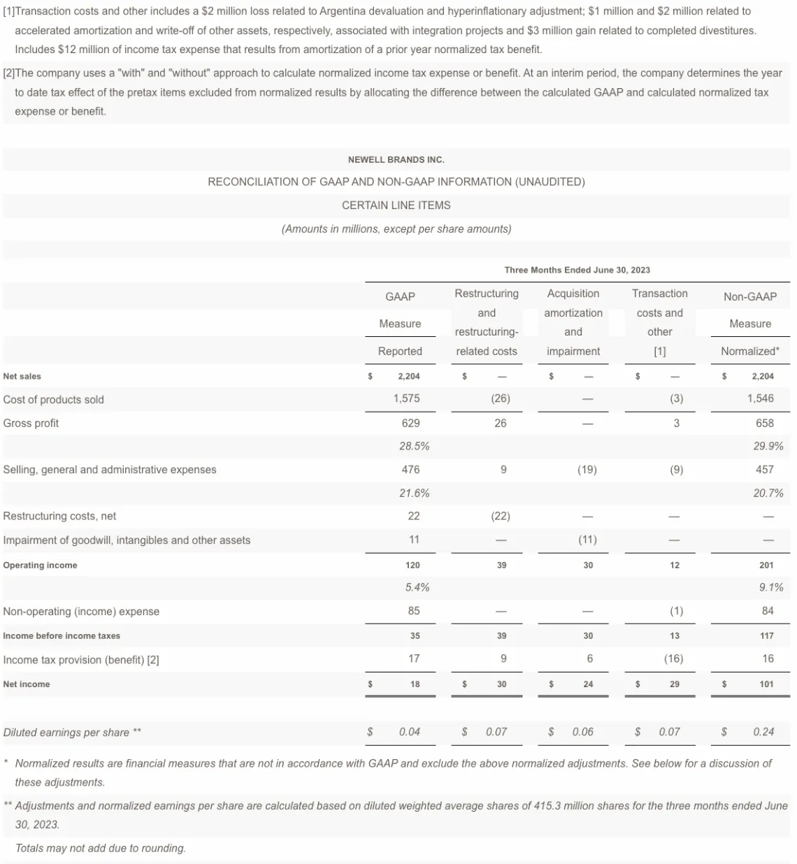 Chris Peterson, Newell Brands President and Chief Executive Officer, said, "We are making significant progress in driving Newell's turnaround. During the second quarter, we continued to deliver on our operational and financial priorities for the year, as results came in at the high-end or ahead of our plan across key metrics. Since implementing the new corporate strategy, we have taken decisive actions that have improved the company's top line trajectory, driven significant gross and operating margin expansion, delevered the balance sheet and improved cash flow performance, while strengthening our team, Newell's front-end commercial capabilities and fostering a high-performance, high-accountability culture. We remain laser focused on returning the business to sustainable and profitable growth and are confident that we are pursuing the right strategy to accomplish this."